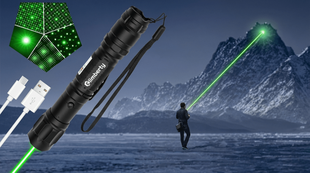 The Climberty Powerful Green Laser Pointer combines all these features in one device.