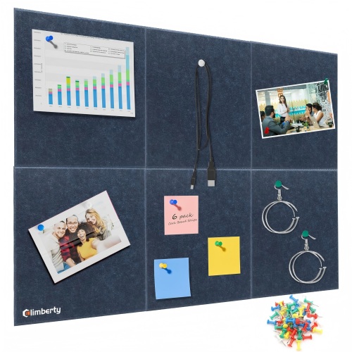 6-Piece Self-Adhesive Felt Bulletin Board Set with 50 Pushpins – 30 x 30 cm Wall Panels for Notes, Photos & Schedules (Blue)