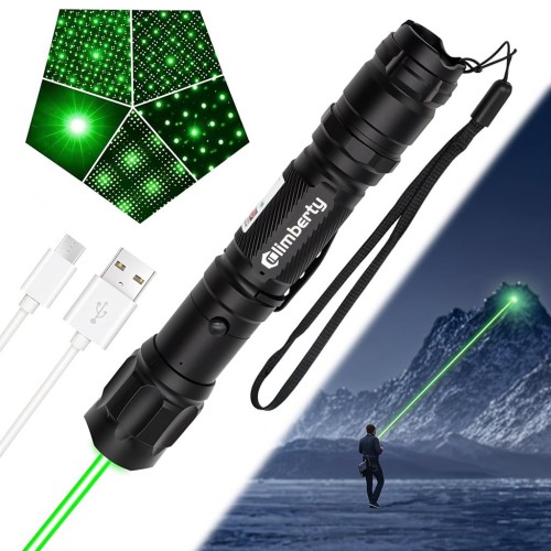 Long-Range Rechargeable Green Laser Pointer with 8 Star Patterns – Waterproof Aluminum Alloy Design